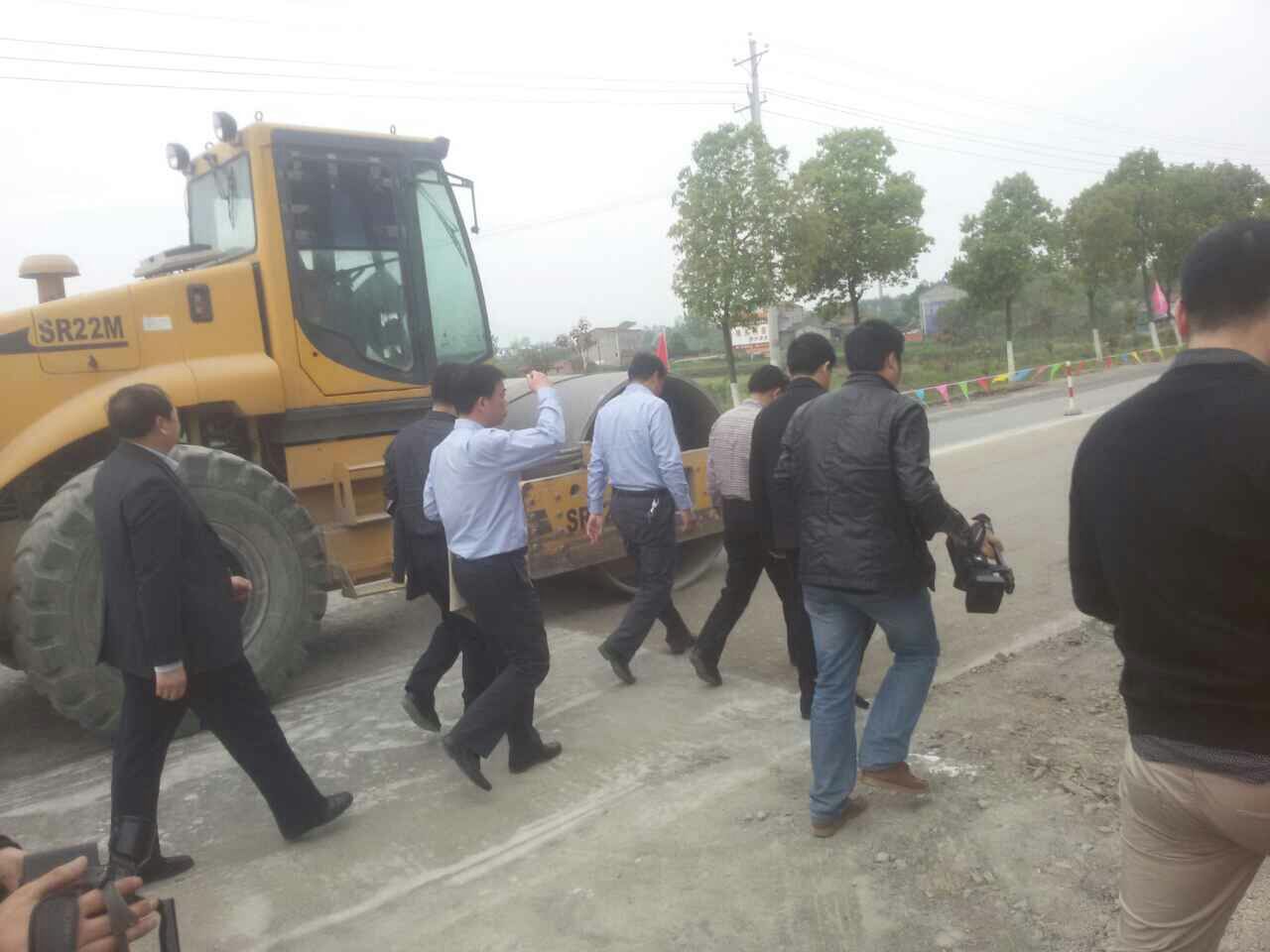 圖為荊門市委書記,湖北省公路局局長,京山縣公路局局長現(xiàn)場觀摩指導工作。
