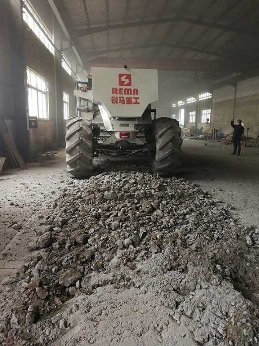 2017年歲末,我路拌公司研發(fā)的新產(chǎn)品RS600水泥路面破碎機(jī)樣機(jī)下線,并成功完成了水泥路面的破碎試驗(yàn),試驗(yàn)的結(jié)果讓開(kāi)發(fā)人員驚喜,實(shí)際工作效果超出預(yù)期,報(bào)廢的車間水泥路面強(qiáng)度雖然高,但破碎機(jī)工作穩(wěn)定,堅(jiān)硬的水泥路面輕松破碎。